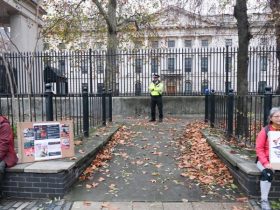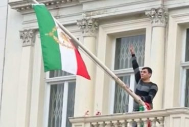 An anti-regime protester scaled the balcony of Iran’s Embassy in London ...